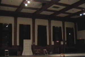 Watch the video below that was taken by the Rutgers Rarities Team when investigating an old theater on the New Brunswick campus one night. The video you are seeing is 100% unaltered, untouched and completely for real. Look near the top of the clip for motion and you will see a circular, softly glowing object moving and sort of swaying back & forth quickly in the dark. This is not a reflection or a light given off by any type of equipment (we had no equipment except for our camcorder and a tape recorder-we didn’t even have a weak flashlight!). This is in fact something captured on film that the Team did not even catch until reviewing the film after the investigation and we are honestly baffled. This footage occurred when we walked down the stairs into the dark basement of the supposedly haunted theater (please read the full account below & investigation for the complete story and history) and Co-Investigator Ray began filming the deep basement room before any lights were turned on. We were simply walking down stairs into an open area with our guide fumbling for the lights behind us. Please note the strange, almost fluid motion of this spectre as it sort of sashays out of sight at our approach. The RR Team is seeking an answer for this amazing instance of real phenomena caught on tape. We welcome all and any explanations or comments- again, we are simply trying to figure out what we may have unintentionally captured. Please examine the footage as it replays and give us your thoughts.