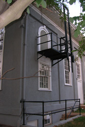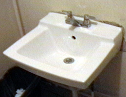 Upon our initial entrance to the building Ava pointed out to us that the theater contains a brightly lit attic-loft area directly above the stage area, near the roof, that seems impossible to access. We later learned that there is a ladder outside that provides access, although the way in is boarded up, which is strange. Stranger yet, this loft light never goes out and is left on all night by the theater’s users who are very careful to turn off all lights and do a thorough lock-down upon exit. As anyone can imagine, many odd shadows are created by this remote light near the ceiling which filters down through wooden planks into the stage area. Could this light/shadow effect be the cause of the many ghost stories surrounding this place? Anyway, as we correctly surmised, some theater students were in fact wrapping up their rehearsal for the evening and this gave us the opportunity to ask them about any interesting experiences they might have had during their practices. The ghost of Jane was not unheard of to the group and one student told us that she felt that there were two separate spirits in the theater, Jane, who haunts the stage area and a mischievous little girl spirit who haunts the basement level. The little girl spirit was a new one to us and we were eager to examine this basement area where the little girl spirit purportedly “turned on a water faucet in the ladies room” while the group was rehearsing upstairs. One of the theater students was so frightened by the water faucet incident that she mentioned it to a Douglass facilities person who assured her that the faucet most likely went on because of water pressure issues. It should be noted however that when we actually examined the faucet in the reported bathroom the handle was an old-fashioned “turn-style” faucet handle that took some effort to turn and amazingly didn’t leak even slightly.