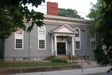The Little Theater was originally investigated by the RR team in the dead heat of summer, when the building was locked up and there was no sign of anything going on. We had read all the reports of the ghost of “Jane” a little old lady who purportedly haunts the place she loved so much during her long-term stint as director of the theater. The RR Team heard about one of Jane’s latest pranks from correspondent Brent who told us that the ghost knocked over some of his band’s equipment when they were playing there a few months back. Recently Ray, guest investigator Ava Gascer of the Home News Tribune, and I decided to check out some of Jane’s latest exploits on a late rainy evening when we suspected that the building was in use by some Mason Gross students.