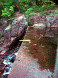 Further yet into the woods we found the waterfalls, which were a veritable hotspot for random couples making out in the dimming sunset. Blah, blah, blah. After crossing the falls the hard way via climbing slippery rocks and literally walking across the fall”s ledge, the RR Team accepted that this place was pretty stable for the night and that strangeness would have to be encountered elsewhere. One last interesting moment however occurred on the way out when a Park Ranger”s truck went plowing up one of the dirt trails at a very fast speed into woods that were labeled as private property. The truck went flying by so fast that I doubt the Ranger saw us, which we were glad of as it was after dark and the park was definitely closed. We were curious as to what the emergency was and where exactly the Ranger was headed to in such a quick manner. We listened but heard nothing, the woods were almost eerily silent at this time and thus, we simply walked back to the trusty RR-mobile to plan our next stop.