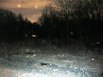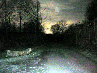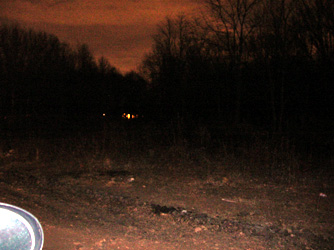 Now, many people have written in to the RR site and have informed us that yes, the Dismal Swamp Road does actually lead somewhere and that somewhere is the Triple C Ranch which is actually a very nice wetlands preserve sort of place whose only odd claim to fame is the presence of chemically altered green rabbits (their fur is green due to the pollution of the area). Sure enough, once we were on the Infamous Dismal Swamp Road, which has been recently paved and while still bumpy, is at least now negotiable in a car, we soon came into an area of actual swampland where the Triple C Ranch exists. I heard no strange sounds and because it was winter I could now see my surroundings so much clearer than the last time, when Ray and I felt like we were literally driving through an overgrown marsh. Feeling brave and reckless, Ray and I began to take pics of the swampy area only to soon have our new-found courage dampened by the appearance of many orbs in each first shot of an area.