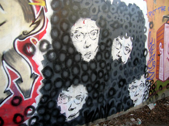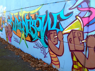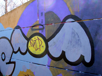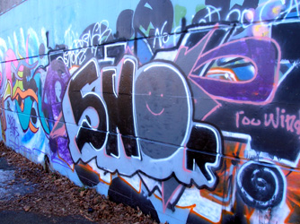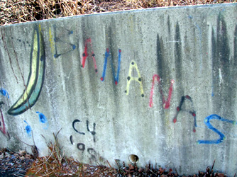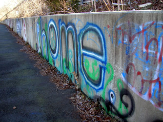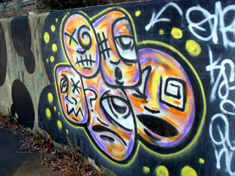 Fast forward to November 2005 – Rutgers Rarities in full effect. A rare daytime investigation places the Team at Johnson Park in Piscataway and the overpass once again comes to mind. The mystery weighs heavy in recalling that fateful day. Across the river, the area is located and the afternoon sun sheds some light on the subject. The overpass leads to a canal path along the river that spans both directions as far as our eyes can see. Even more interesting are the brilliant colors and markings that are clearly visible along this path. Scanning left towards the Johnson and Johnson headquarters, a series of vivid murals stand out, transforming the concrete wall at the base of the George Street exit into a tapestry of artistic expression. It was in that moment that our eyes were opened up to the area immediately dubbed Graffiti Mecca, and thus the obsession began.