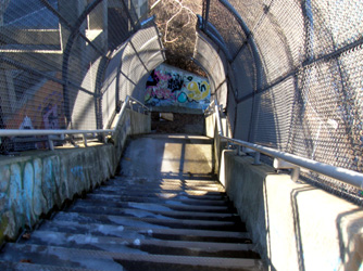 The story begins almost eight years ago. My friend Joe and I were looking for some good spots to hit up, and our skating excursions led us to Diener Park in the midnight hour. We always took note of a gate along the edge of the park that connected to an overpass which seemed to lead over Route 18 to the base of the Raritan River. This time we also noticed something else – that the padlocked chain holding the gate closed had just enough give to allow our entrance into the unknown. After building up enough adrenaline, we convinced ourselves to check things out. As quiet as we tried to be, our uncooperative blades announced our presence to whoever or whatever was out there. Slowly making our way down to the bottom of the steps, it was hard to see much, but there was still a strong sense that we were not welcome. Before long, we both heard a noise that was enough to send us clunking back up those steps as fast as we could. Unsure if we were being chased, we took off as if our lives were in danger, squeezed through the fence, and never went back to the spot again.