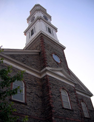 There are two main church graveyards on Nielson and Paterson Streets across from the Hyatt Hotel in New Brunswick. The First Reformed Church is a Dutch Reformed Church, and one of the first in New Brunswick. This makes sense because the Dutch Reformed Church was responsible for the initial establishment of Rutgers. The church itself was organized in 1717, and the leaders of the church were among the first signers of the charter for Queens College. The church was moved to its current location in 1767, and the clock tower was completed in 1839. Many notable names could be found throughout the cemetery, including Hardenbergh, who was the first to set out from the Netherlands in hopes of establishing a college in the colonies. Some interesting grave markers included those of Revolutionary War heroes who fought alongside George Washington. Another name in particular that stood out was Abraham Suydam, whose name appears in the Items of Interest page in reference to his brutal murder. It must be researched as to whether or not this is the same man or a relative. Another interesting characteristic of the graveyard is the low hanging pine trees that seem to hang over the grave markers in a protective fashion. It appears to be an example of nature protecting nature.